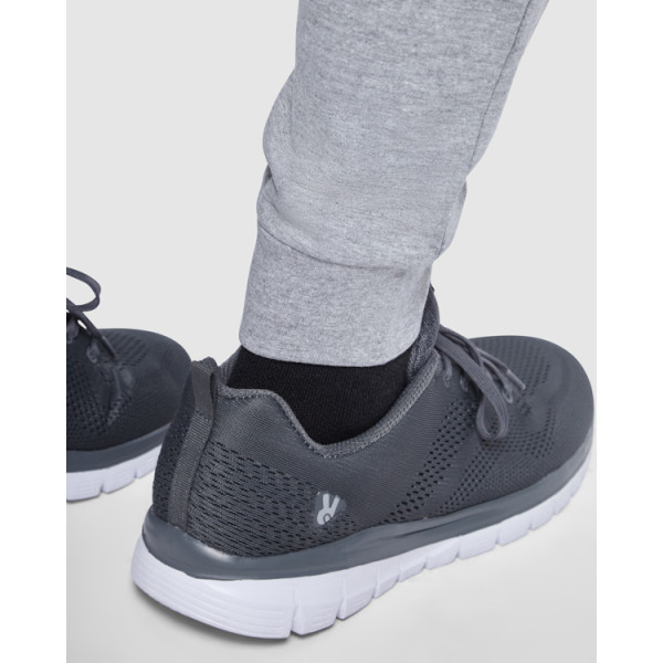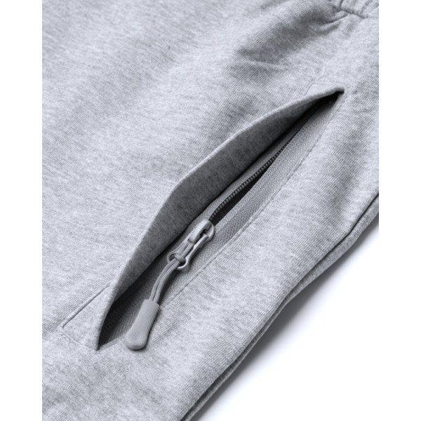Basic straight-leg non-brushed fleece trousers. Side zip pockets in adult sizes. Elasticated waistband with adjustable drawcord and metal eyelets. Back pocket with Velcro closure. 1x1 ribbed cuffs.