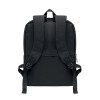 Slim backpack in 600D RPET polyester and 210D lining. Has 15 inch laptop compartment, a 10 inch tablet outside zippered pocket, 2 internal pockets, 2 internal pen pockets, zippered front pocket. 2 side pockets. Soft padded back and shoulder straps. Suitcase sleeve.