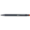 Aluminium and ABS ballpen with rubber coating and rubber tip for capacitive screens. When the pen is lasered, the imprint will show in colour. Blue ink.