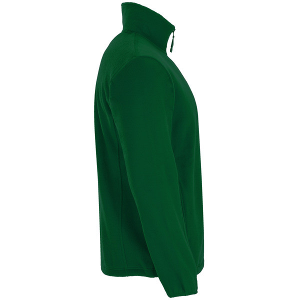 Fleeced jacket with high lined collar and matching reinforced covered seams. Injected zip with matching puller made of fabric. Side pockets. Cuffs with elastic trim. Bottom hem with inner side adjusters.