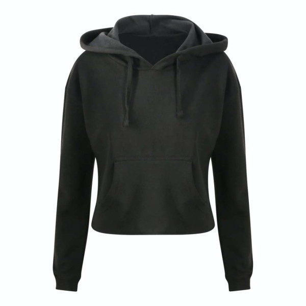 80% Ringspun Cotton/20% Polyester;Girlie relaxed fit;Cropped cut with drop shoulder design;Kangaroo pouch pocket;Twin-needle stitching detail;Raw edge hem with cover stitching;Double fabric hood;Flat lace drawcords;Simple tear-out label makes it perfect for rebranding;Soft cotton faced fabric creates ideal printing surface;Worldwide Responsible Accredited Production (WRAP) certified production;