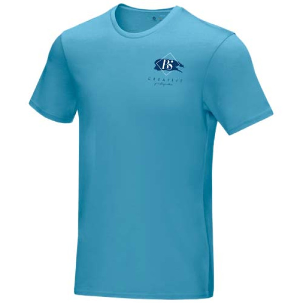 The Azurite short sleeve men's organic t-shirt is a responsible choice. Made with 100% organic cotton with a fabric weight of 160 g/m², this t-shirt is not only good for the environment but also soft and comfortable to wear. With its round neck and short sleeves this t-shirt is both sustainable and modern, and the double needle stitching details and heat transfer main label ensure durability and tagless comfort.