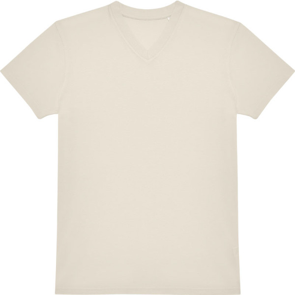 Classic cut, V-neck, necktape, neutral size label, 40° washable, suitable for tumble drying at low temperature. 145g/m², 100% preshrunk ringspun cotton, sport grey: 85% cotton, 15% viscose, single jersey