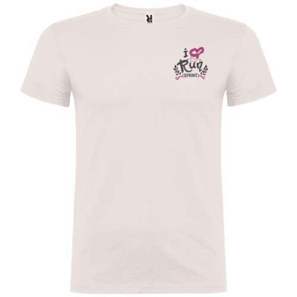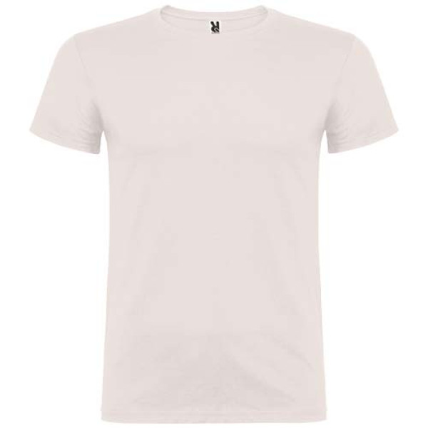 Short-sleeve t-shirt with double layer crew neck in elastane, made in tubular fabric for adults. Reinforced covered seams in collar. Removable label. The model is 190 cm and is wearing size L.