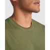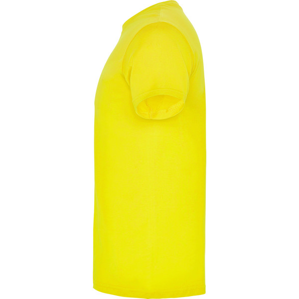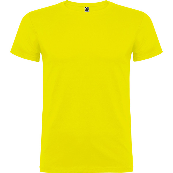 Tubular short-sleeved t-shirt in adult sizes and with side seams in kid's sizes. 1x1 ribbed round neck. Taped neckline in matching fabric.