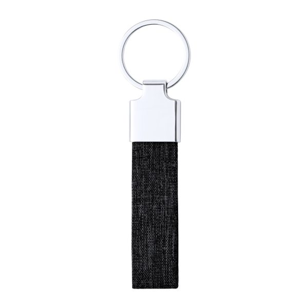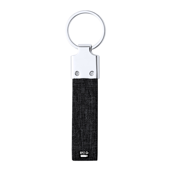 Metal keyring with RPET polyester strap.
