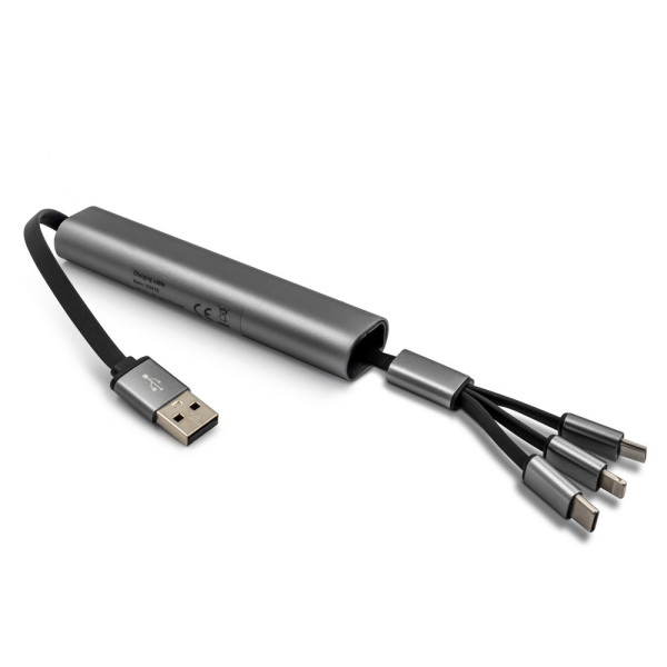 Charging cable with 4 plugs: USB, micro USB, USB type C and plug compatible with iOS devices, USB type C with synchronization function, large area for personalization