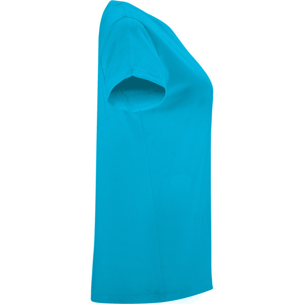 Short-sleeve t-shirt for women. Crew neck in the same fabric and matching covered seams. Rolled hem in sleeves reinforced in four points.