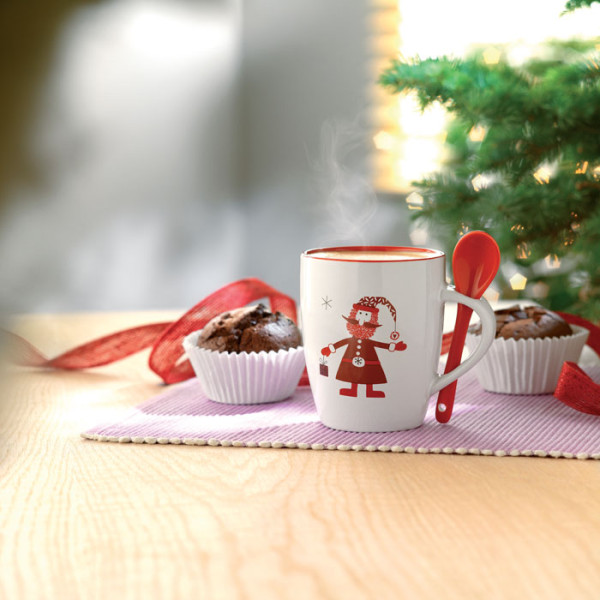 Ceramic mug 250ml with integrated spoon with Santa Claus decoration. Individual matching design gift box.
