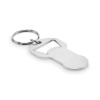 Bottle opener token keyring made of recycled aluminium with iron ring.