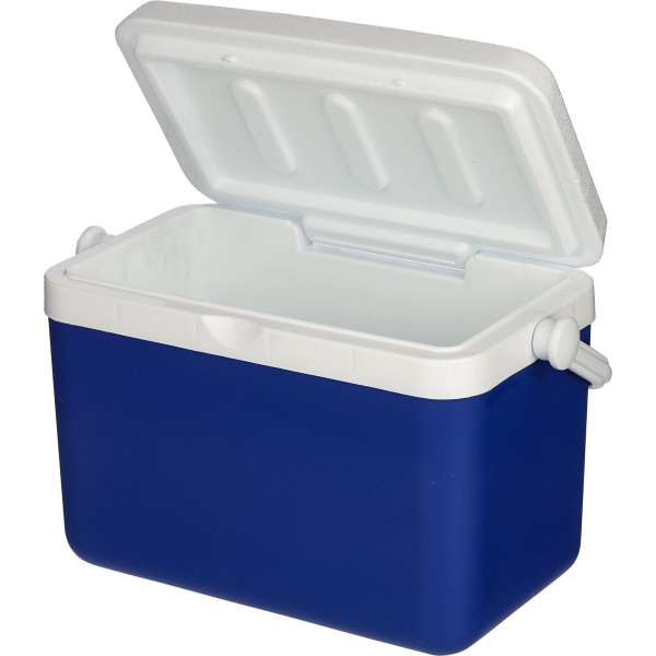 Cooler box with liter capacity, made with interior and exterior, lid, and insulation layer. Made with durable, lightweight materials (PU/PE) that resist moisture, chemicals, and everyday wear for long-lasting performance. Designed to keep contents warm for 4 to 5 hours or cold for 8 to 12 hours. Features a sturdy handle for easy carrying.