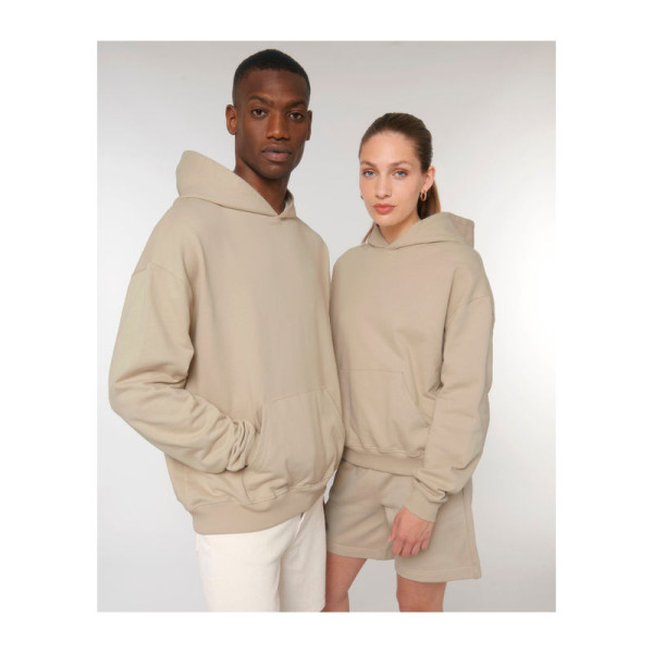 Experience comfort with our unisex boxy hoodie featuring a double-layered hood, kangaroo pocket, and durable twin needle stitching. Perfect for everyday wear.
