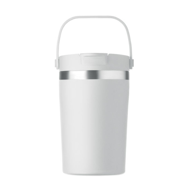 Double wall recycled stainless steel (90% recycled stainless and 10% stainless steel) tumbler with PP 2-in-1 sip and straw lid. Leak-free and durable. Capacity: 350 ml.