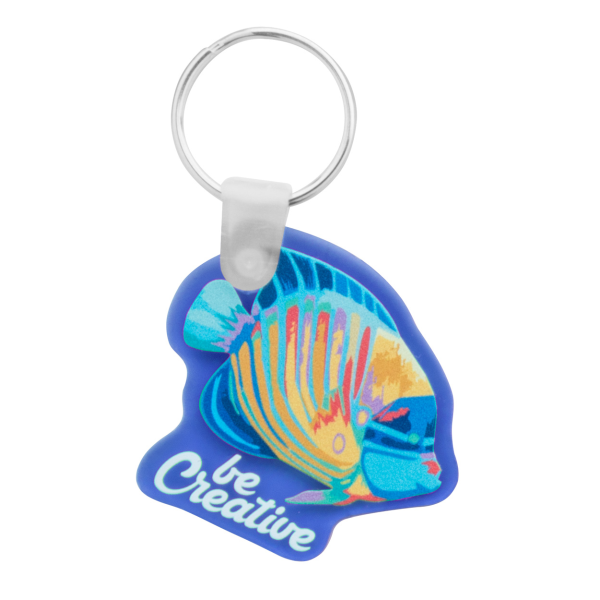 Custom made, acrylic keyring with full colour printing. Produced in custom shape - maximum size: 45x45 mm. Price includes UV LED printing on one side. MOQ: 250 pcs.