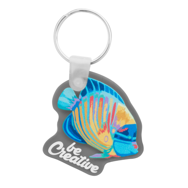 Custom made, acrylic keyring with full colour printing. Produced in custom shape - maximum size: 45x45 mm. Price includes UV LED printing on one side. MOQ: 250 pcs.