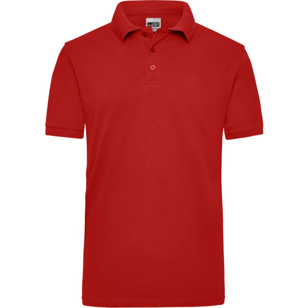 Cut guarantees optimal comfort, knitted polo shirt collar and cuffs, necktape, double seams, shape-retaining, white 95° washable, suitable for tumble drying, colored 60° washable, suitable for tumble drying at low temperature. 220g/m², 100% combed ringspun cotton