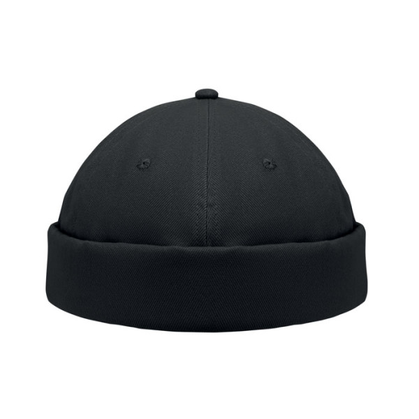 Docker cap made of 100% heavy brushed cotton, 260gr/m2, mesh and with metal buckle