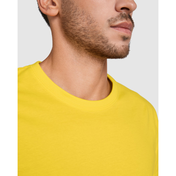 Short-sleeve t-shirt with 4-layer crew neck and reinforced covered seams in collar and shoulders. Side seams.