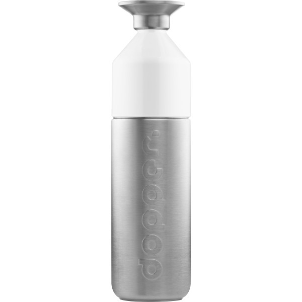 Stand strong for crystal clear waters with the Dopper Steel 1.1 L. This knight in shining armour is cool and robust and fits perfectly into a sports bag. A must-have for those of you who love sports and the outdoors!The Dopper Steel holds 1.1L and has three parts that are easy to clean. It is dishwasher safe up to 65°C / 149°F and should be used for tap water only. The Dopper Steel is manufactured responsibly in China (BSCI Code of Conduct) and is Cradle to Cradle certified at the Bronze level. All materials are BPA and phthalate-free. Warning: this is not a thermos. Only available with personalization and in multiples of 6 pieces. Combined with practical PP cap with integrated straw. Cap not suitable for hot and sparkling drinks. Cut the straw on the indicated line for optimal use.