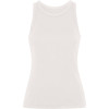Women's ribbed knit tank top. Wide raw collar and armholes in the same fabric and reinforced with two seams. Double stitched hem.