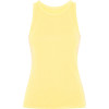 Women's ribbed knit tank top. Wide raw collar and armholes in the same fabric and reinforced with two seams. Double stitched hem.