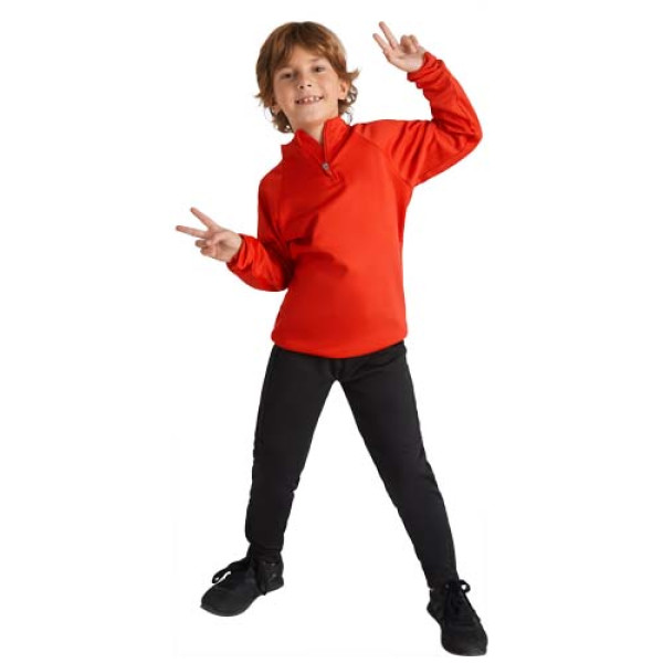 Technical fabric. Raglan sleeves. Inner fleece. Collar with half zipper and matching reinforced covered seams. 1x1 rib in back collar, cuffs and hem. Removable label. Sweatshirt to match with Neapolis trousers.