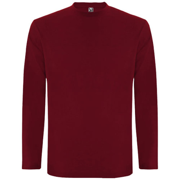 Long-sleeve t-shirt in tubular fabric and 4-layer crew neck. Reinforced covered seams in collar and shoulders. No cuffs. Removable label. Tubular design in adult sizes and side seams in kids sizes. The model is 185 cm and is wearing size L.