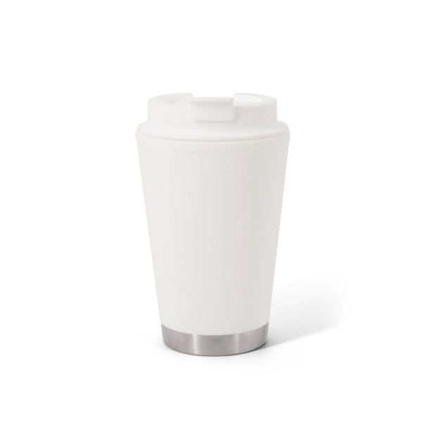 Dvostruko izolirana putna šalica od PP plastike, nepropusna. Poklopac s preklopnim zatvaranjem za sigurnost pića. Kapacitet do 410 mL. ø90 x 145 mm