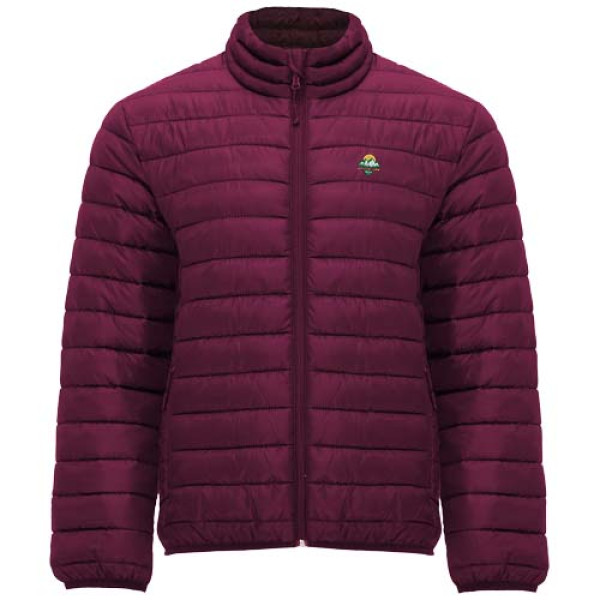 Men's quilted jacket with feather touch padding. Inverted zippers with matching chin protector and puller. Two front pockets with zippers. Matching elastic edging in collar, cuffs and hem. Contrasting inner lining. Includes stow carry bag. Lightweight and foldable garment. Removable label. Water resistant. Wind-proof. The model is 184 cm and is wearing size L.