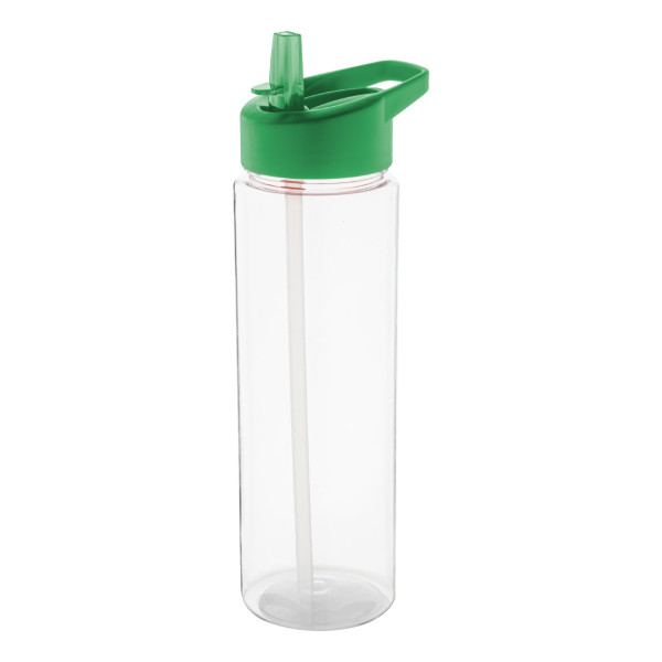 RPET sport bottle with PP flip-top drinking lid and integrated straw. 650 ml. BPA-free. Not suitable for carbonated drinks.