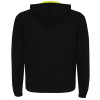 Sweat jacket in non-brushed fleece with details in fluor colour. Central zip with contrasting puller. Hood with lining in microperforated polyester fabric and contrasting fluor colour. Drawcord and metal eyelets in contrasting fluor colour. 1x1 rib in cuffs and waist. Two front pockets with wide trim. Reinforced covered seams on inner collar.