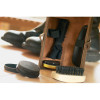 5 pieces luxurious shoe polish kit in gift box. This set includes a black shoe cloth, a black shoe horn, a wooden shoe brush, a shoe shine spongy and polish in a neutral colour.