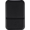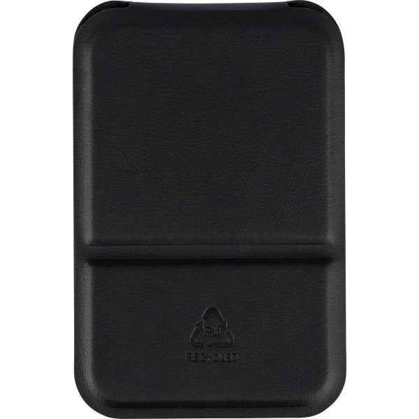 Glass mirror with folding recycled PU cover, designed to stand upright when opened. Pocket-sized at 70 x 11 cm, available in black, white, and red. Includes an embossed recycled logo. Packed in a paper bag.