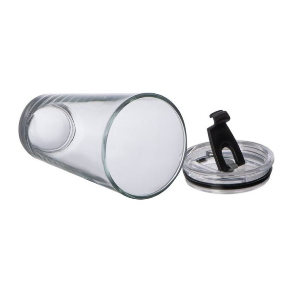 Glass mug with leakproof lid and 400ml capacity. Your advertising will be engraved on the cup.