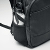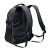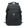 15 inch laptop backpack in 600D RPET polyester. 3 large zippered external compartments fully padded with several inside pockets. It has two mesh side pockets. Adjustable shoulder straps. Padded mesh airflow and trolley holder on reverse side.