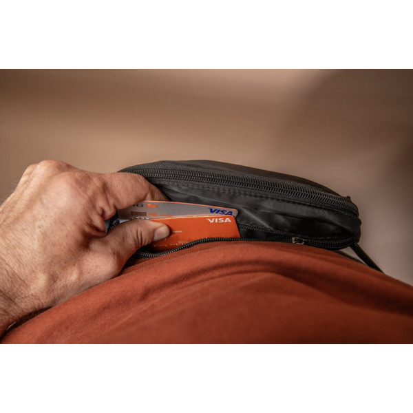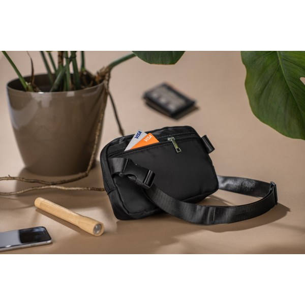 The KIMI hip bag is a versatile pouch combining simple design with practical solutions. The main zipped compartment has space for your essentials, while an additional pocket on the back - on the body side - ensures safe storage of documents or your phone. The adjustable strap allows it to be worn either on the hips or slanted over the shoulder. Suitable for both men and women, it is suitable for travel, work and everyday use. Product available with branding.