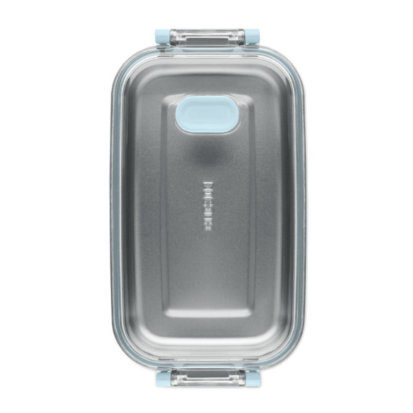 Lunch box made of PP with additional recycled stainless steel inner layer. Airtight AS lid that keeps food fresh and secure during transport. Capacity 750 ml without tray and 650 ml with tray.