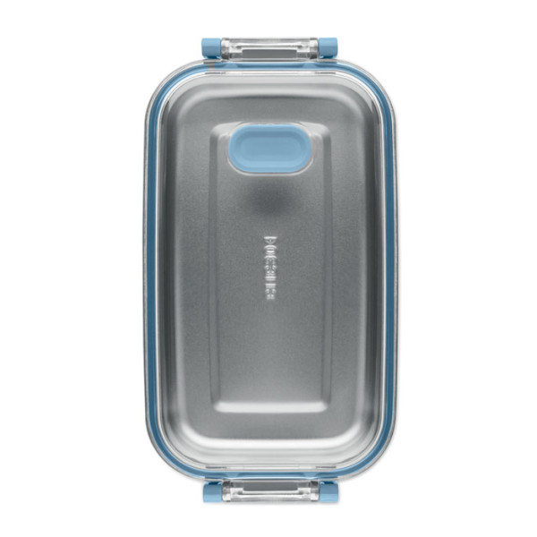 Lunch box made of PP with additional recycled stainless steel inner layer. Airtight AS lid that keeps food fresh and secure during transport. Capacity 750 ml without tray and 650 ml with tray.