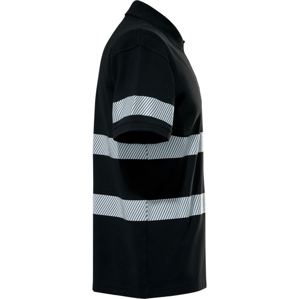 Enhanced-visibility short-sleeved piqué polo with anti-pilling treatment. ·Two segmented reflective strips on the chest and back and one on each sleeve. ·Tone-on-tone 3-button placket. ·1x1 ribbed collar and cuffs. ·Taped neckline. ·Pocket, optional. ·Outer Roly WRK label.·Wash cycles: x25