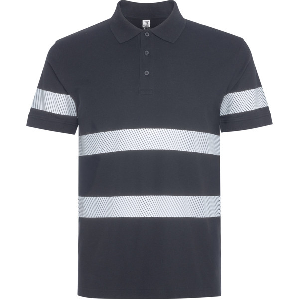 Enhanced-visibility short-sleeved piqué polo with anti-pilling treatment. ·Two segmented reflective strips on the chest and back and one on each sleeve. ·Tone-on-tone 3-button placket. ·1x1 ribbed collar and cuffs. ·Taped neckline. ·Pocket, optional. ·Outer Roly WRK label.·Wash cycles: x25