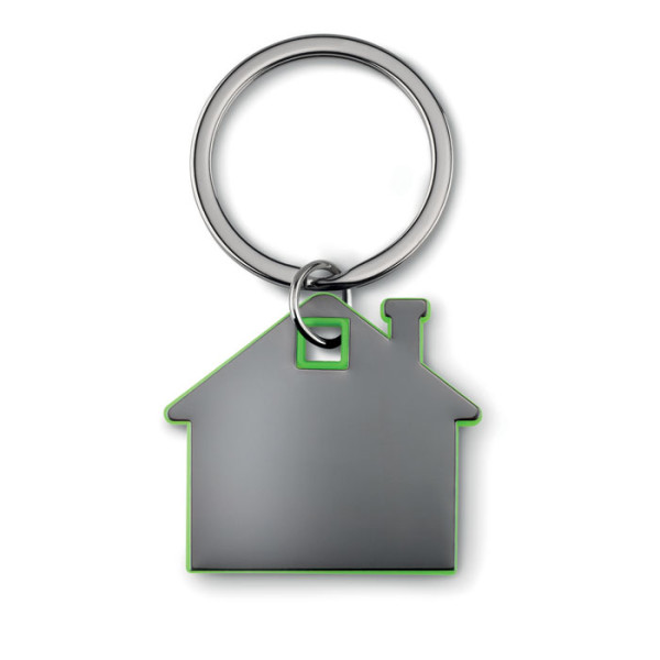 House shaped stainless steel and ABS plastic key ring.
