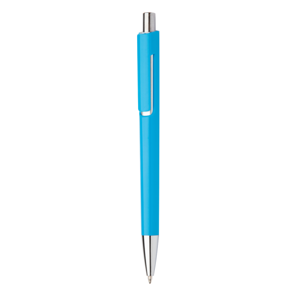 Plastic ballpoint pen with coloured barrel and chrome parts. With blue refill.