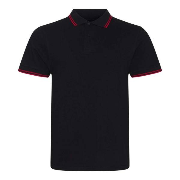 97% Cotton. 3% Spandex;Contrasting tipping on collar and cuffs;2-button placket with dyed-to-match buttons;Size tab label;Spare button;Cuffed sleeves;1x1 ribbed flat collar and cuffs;Stylish and modern fit;Taped neck;Twin-needle stitching on sleeves and hem;Short sleeves;Worldwide Responsible Accredited Production (WRAP) certified production;