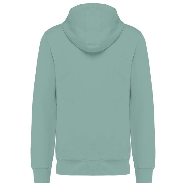 80% organic cotton / 20% recycled polyester;Oxford Grey 75% organic cotton / 25% recycled polyester;French terry LST (Low Shrinkage Terry);Fabric: enzyme washed;Slim fit;2 piped front pockets;Metal zipper;Ribbed cuffs. hem and lined hood. with matching drawstring with metal tip;Half-moon finish at the neckline to facilitate decoration access inside;Twill taped neck;No brand label on neck. only size tag for easy decoration access;Certified STANDARD 100 by OEKO-TEX®N° CQ1007/7. IFTH;