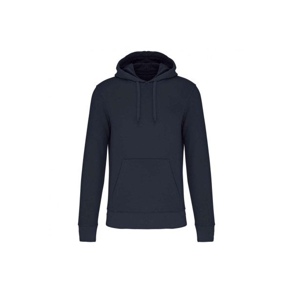 Made from 85% organic cotton and 15% recycled polyester;LSF (Low Shrinkage Fleece) 3-thread brushed fleece;Combed cotton;Enzyme-washed;Straight fit;1x1 ribbed neck. cuffs and hem in tubular assembling for a better finish;Kangaroo pocket;Lined hood with 180 gr 100% cotton Jersey;Matching jersey taped neck and half-moon finish inside neck;Twin needle stitching at neck. cuffs and hem;No brand label at neck. only size tag for easy customization;Certified STANDARD 100 by OEKO-TEX®N° CQ1007/6. IFTH;