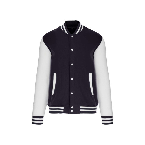 70% cotton/30% polyester;3-thread brushed fleece;Contrasting set-in sleeves;Contrasting press-stud closure;Ribbed neck. sleeves and hem with contrasting stripe details;2contrasting piped front pockets;Twill taping and hanging loop at inner collar;No brand label at neck. only size tag for easy rebranding;