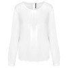100% polyester;Fluid and light crepe fabric;Round neckline with binding;Small gathers at front neckline;Rear and cuffs fastening with matching buttons;