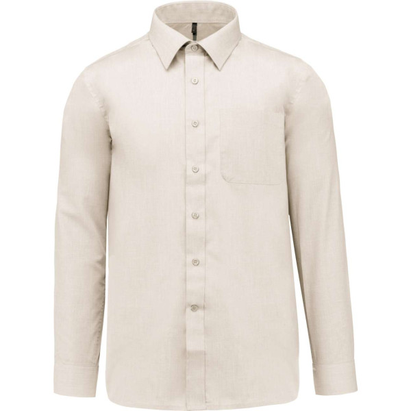 65% polyester/35% cotton poplin;Easy-care fabric;Cut-away boned collar;Matching buttons;Rounded chest pocket on left side;Double back yoke;Felled seams;Adjustable rounded button cuffs with placket;2 spare buttons;