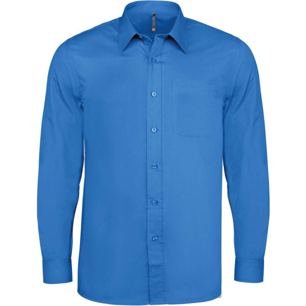 65% polyester/35% cotton poplin;Easy-care fabric;Cut-away boned collar;Matching buttons;Rounded chest pocket on left side;Double back yoke;Felled seams;Adjustable rounded button cuffs with placket;2 spare buttons;