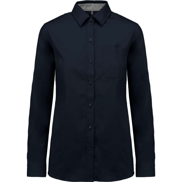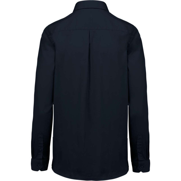 100% cotton;Twill fabric with peached soft touch;Matching buttons;Chest pocket on left side;Contrast Oxford silver inner collar stand and cuffs;Back with singlepleat and lined yoke;Felled seam finish;Adjustable cuff with button pointed tab end;Spare button;
